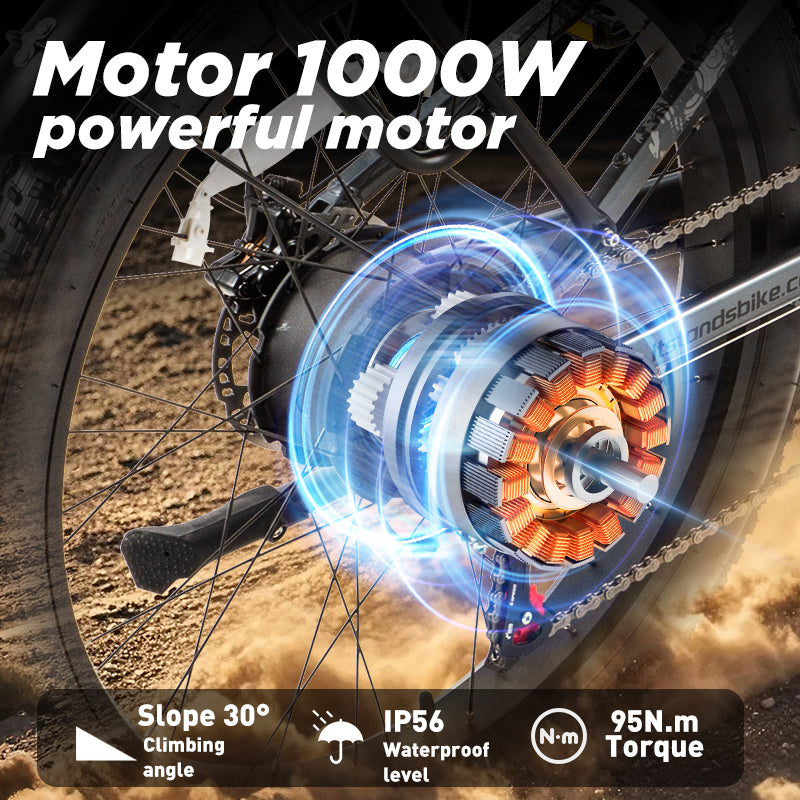 - The motor output power is 1000W and the torque is up to 90N.m, which can cope with various terrains. Capable of carrying up to 400 pounds and climbing steep hills, our motors have the performance you need.