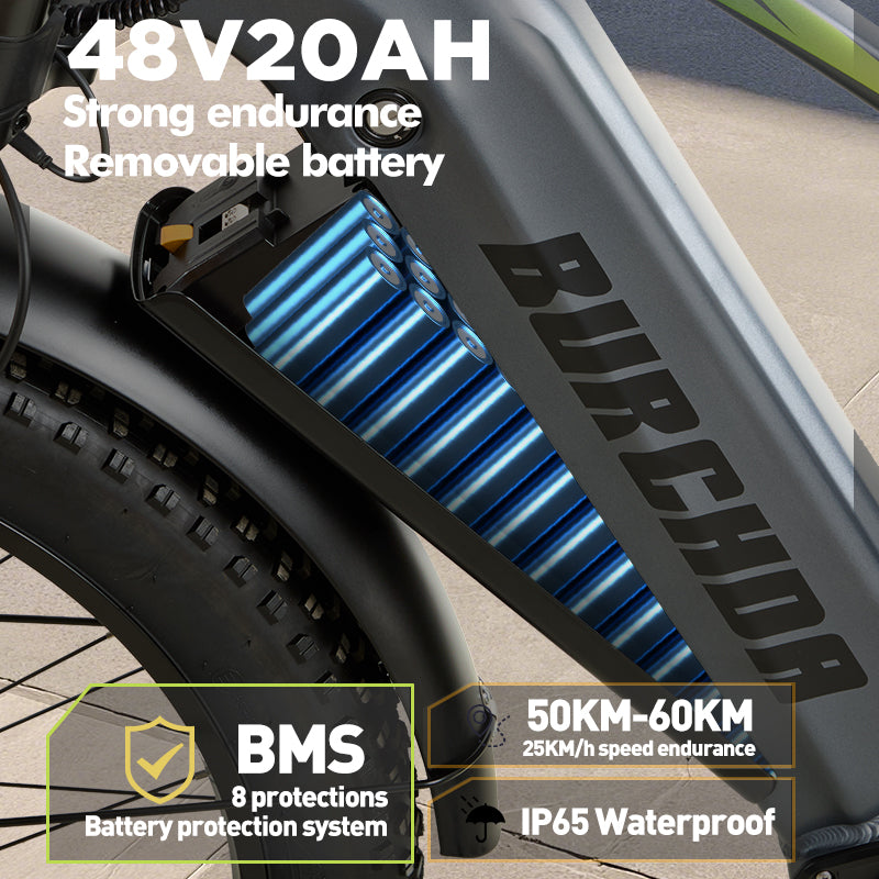 - With a whopping 48V20AH capacity, it offers remarkable endurance, powering you up to 50-60km in electric-only mode and 70-90km in pedal-assist mode.