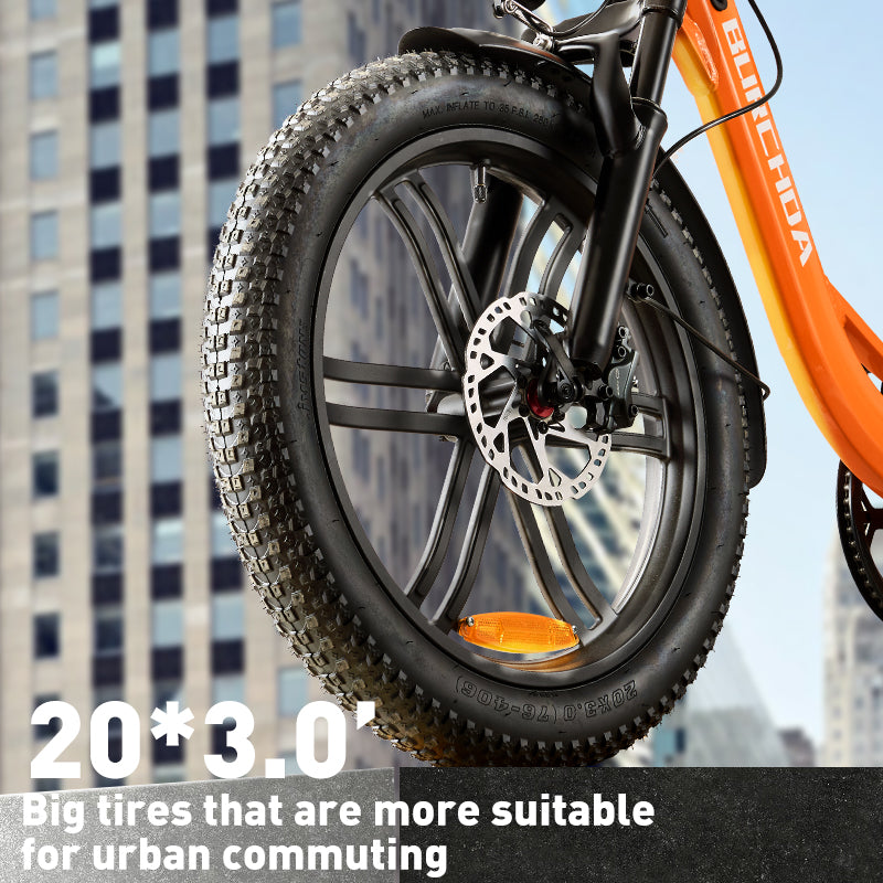 - 20 inch wheels are suitable for short and elderly individuals, meeting their daily commuting and occasional off-road needs. The 3-inch width ensures absolute grip and stability, effortlessly conquering muddy and uneven roads.