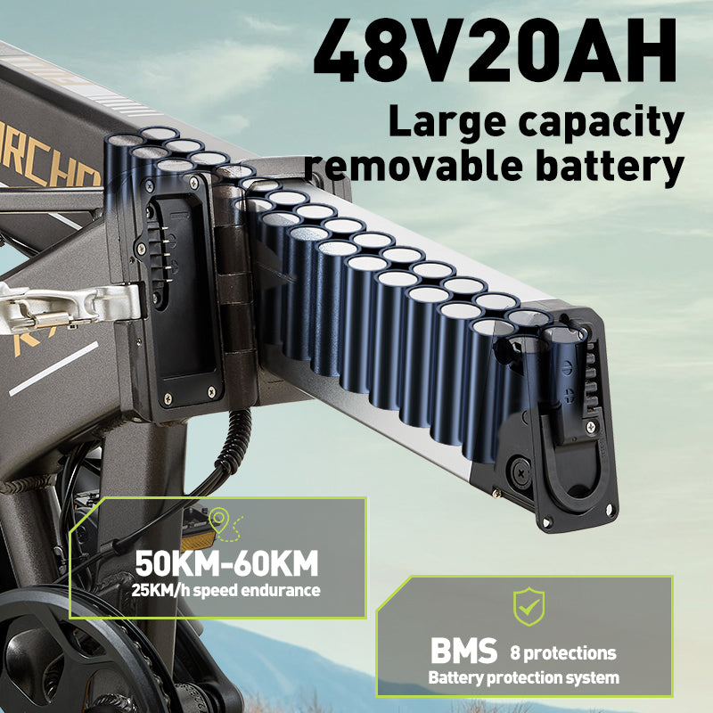 With a whopping 48V20AH capacity, it offers remarkable endurance, powering you up to 50-60km in electric-only mode and 80-90km in pedal-assist mode.